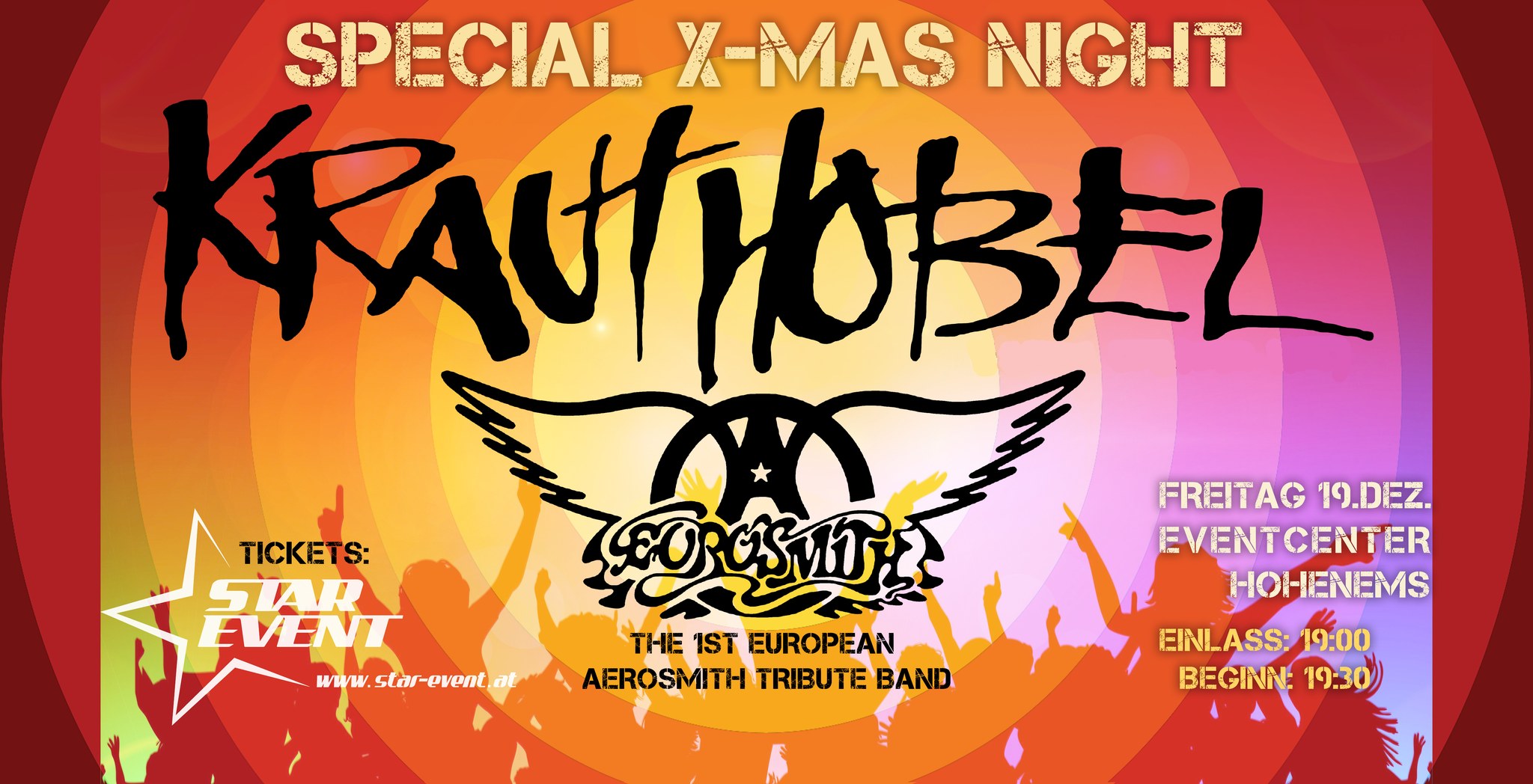 Eintrittskarten: Veranstaltungen von Star Event - SPECIAL X-MAS NIGHTKRAUTHOBEL & AEROSMITH Tribute by EUROSMITH - Eintritt