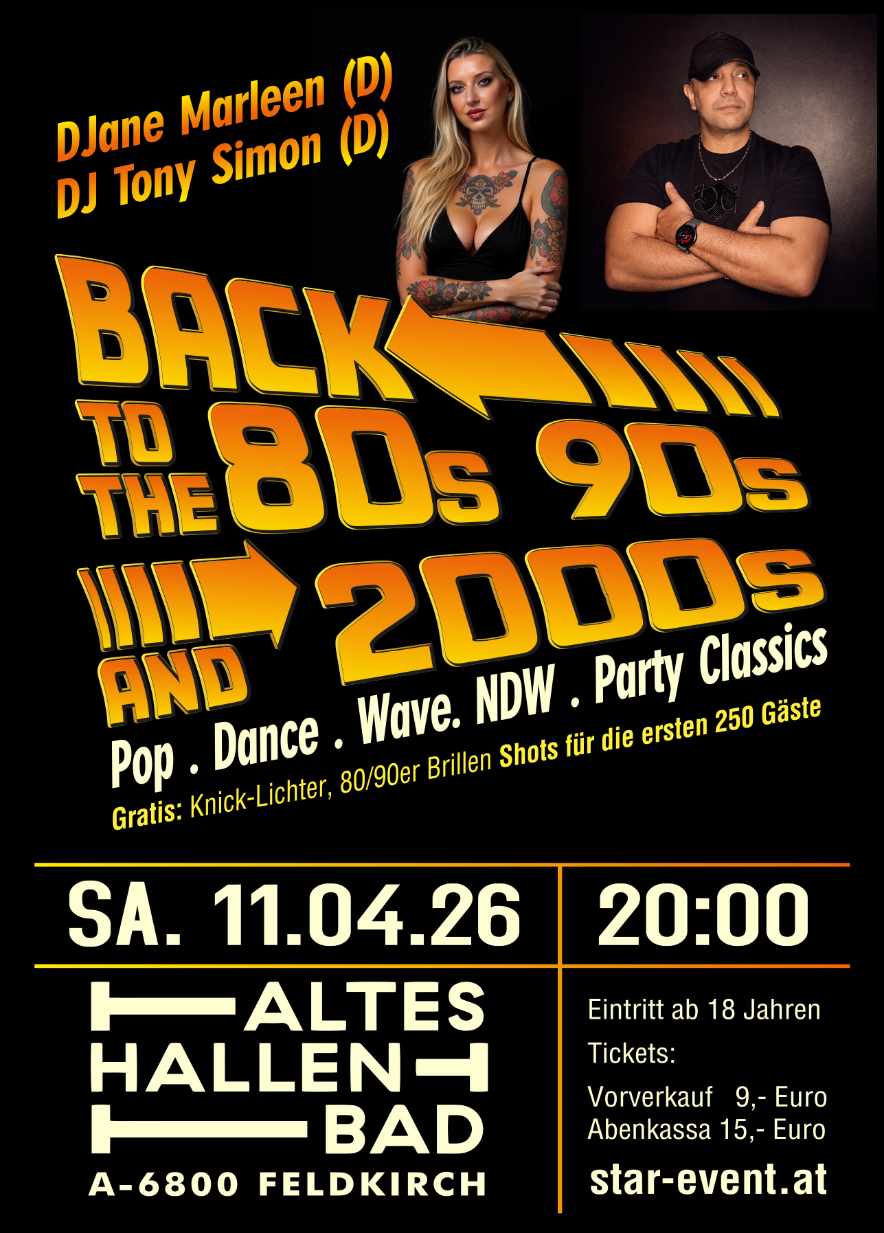 Back to the 80´s, 90`s & 2000er - Die Party & Zeitreise im Alten Hallenbad in Feldkirch ist für alle, die die 80er, 90er und 2000er lieben und immer wieder aufs Neue feiern. Wir machen das kunterbunte Jahrzehnt erlebbar ![]()